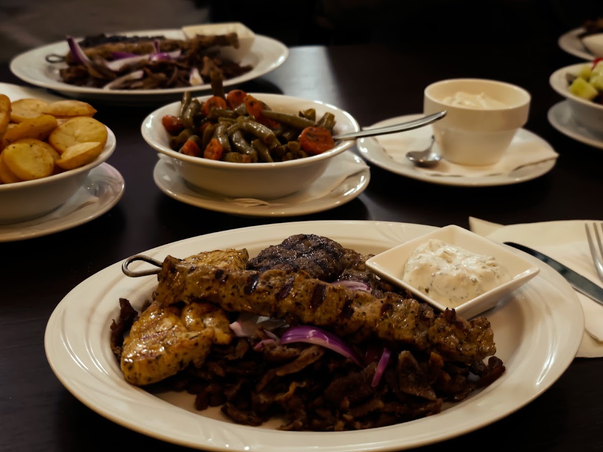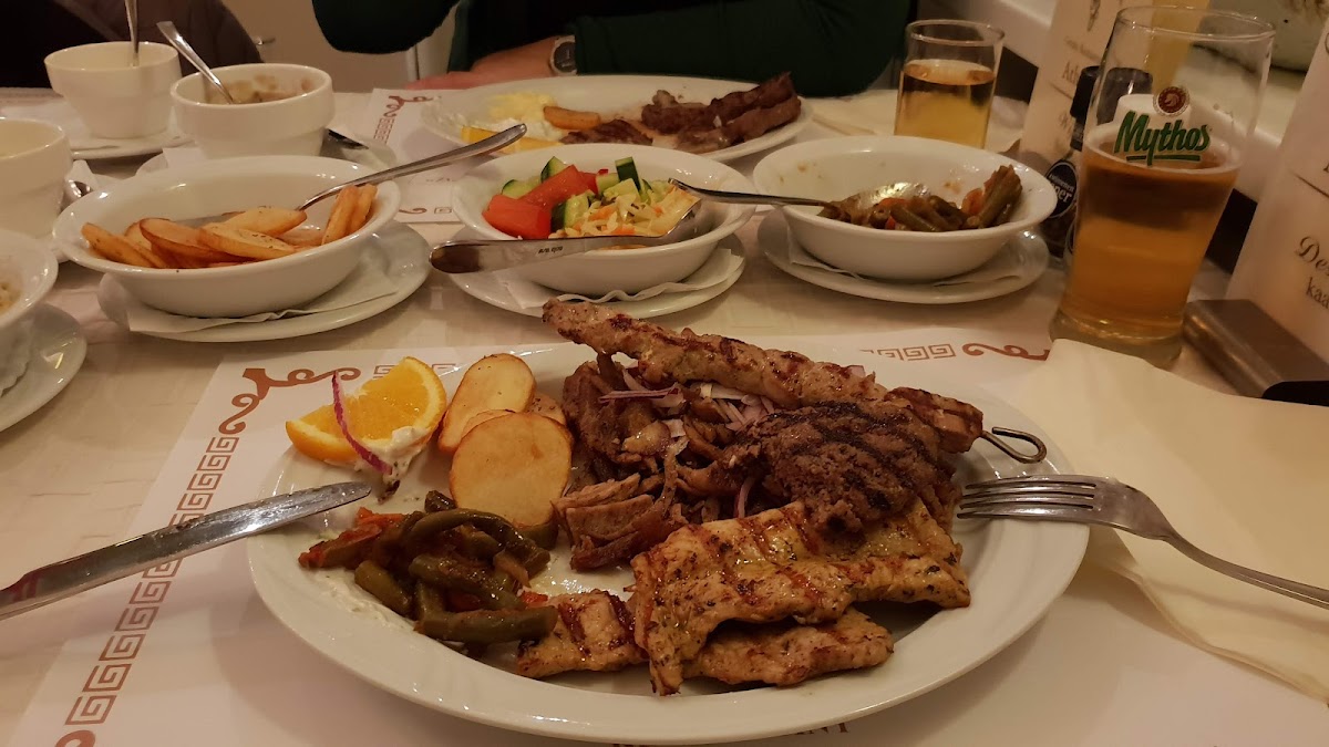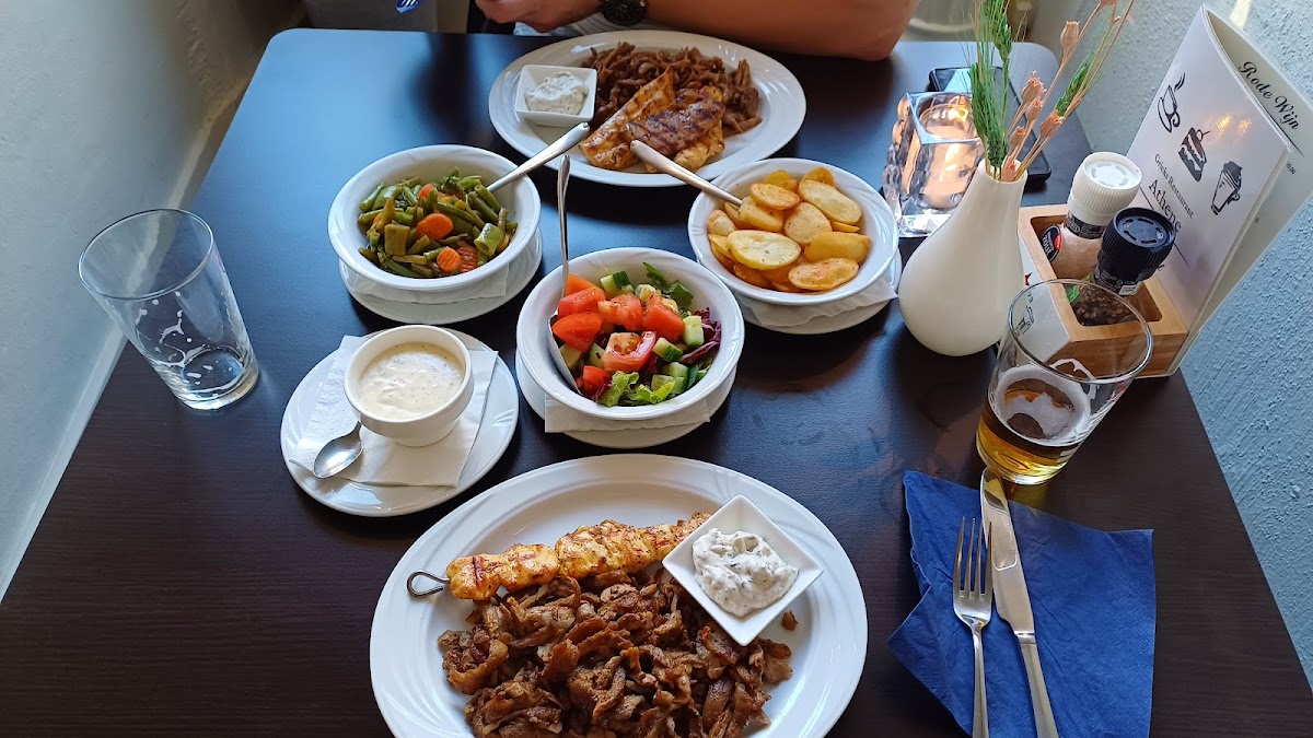 The menu is a true celebration of Greek classics. A standout dish is the Mixed Grill, which brings together tender cuts of meat, perfectly seasoned and grilled to perfection. The Gyros Schotel is another highlight, featuring juicy slices of spiced meat served alongside fresh vegetables and a side of creamy tzatziki-every bite bursts with flavor. For those who enjoy pairing their meal with drinks, the restaurant’s beer selection is satisfying, and the wine list deserves special mention, offering a variety of reds and whites that complement the rich flavors of the dishes beautifully.